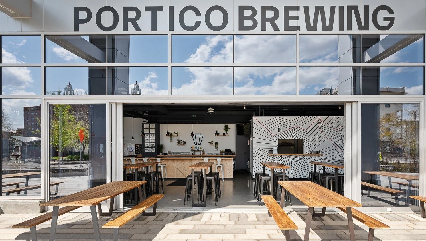 Portico Brewing is a five minute walk from the Union Square Stop and there is plentiful bike parking.